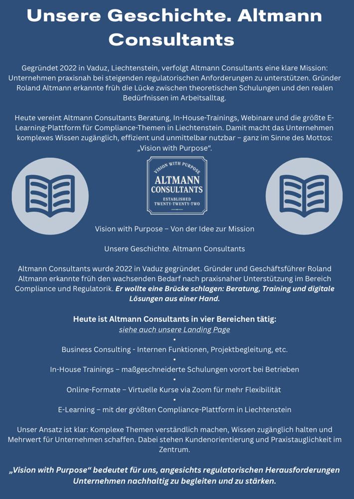 Bei Altmann Consultants liegt es uns am Herzen, unseren Consulting-Kunden und all unseren Kursteilnehmern stets qualitativ hochwertige und praxisorientierte Inhalte zu bieten.